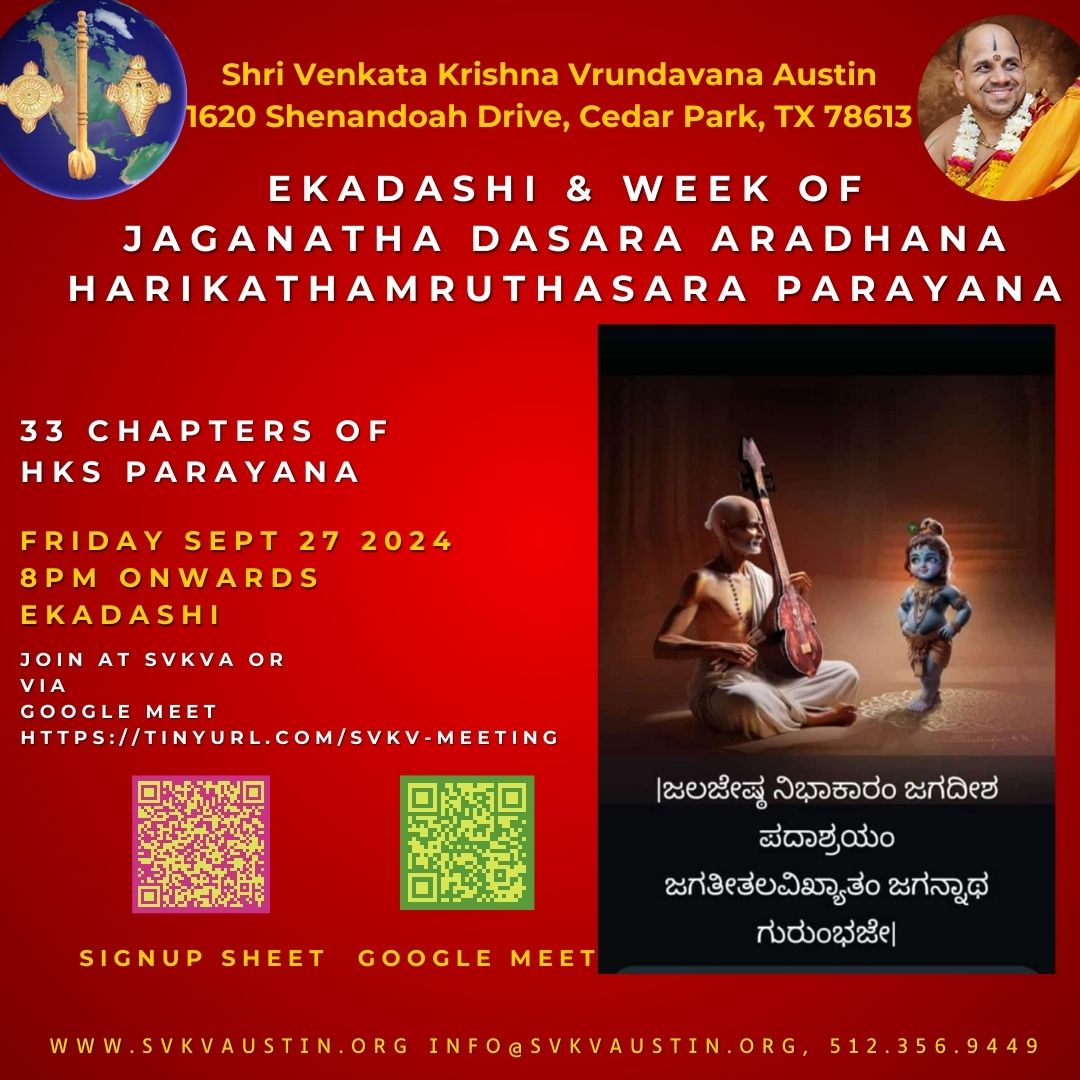 Harikathamruthasara Parayana – Friday Sept 27th 2024 8PM onwards