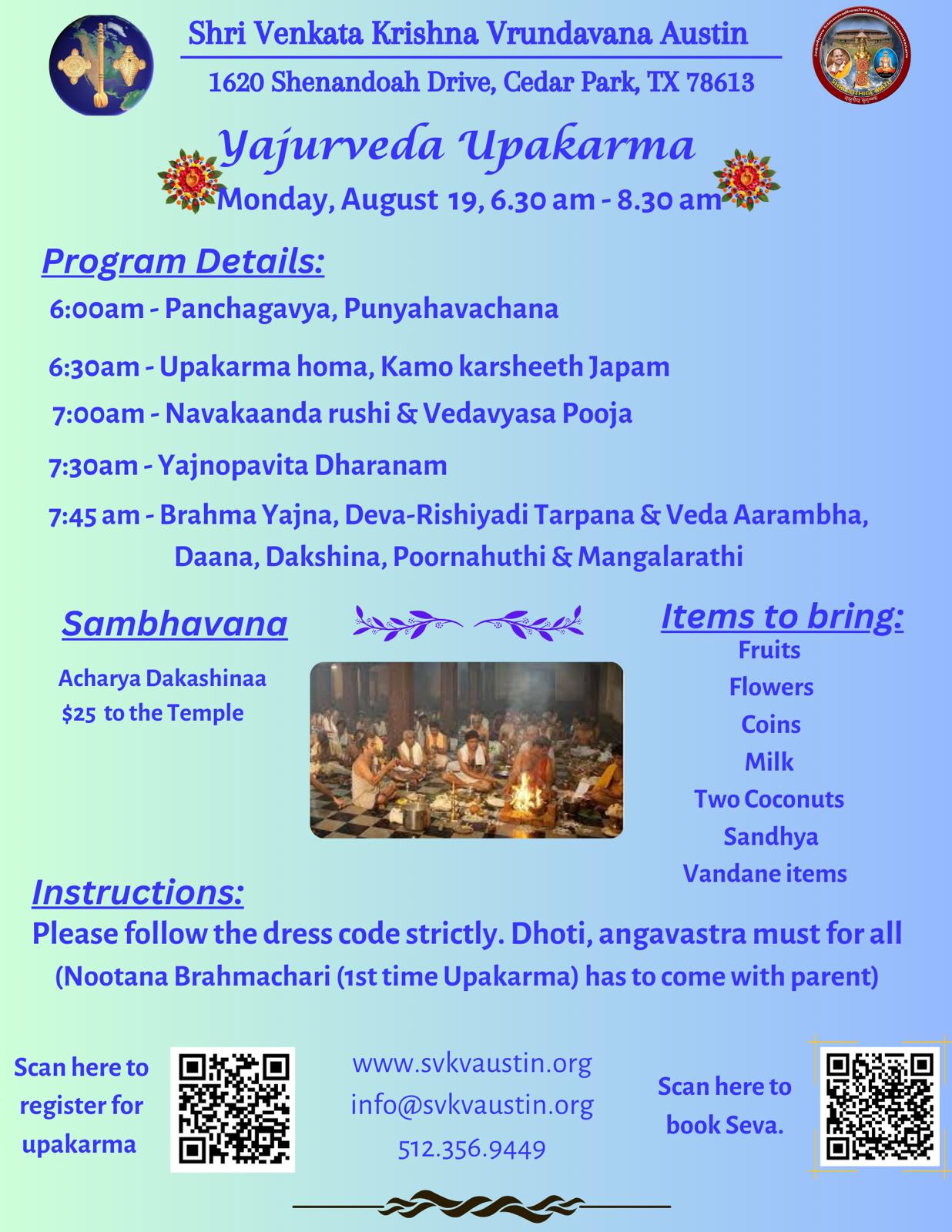Note: Please offer Priest Dakshina separately in person or via Zelle (8482180652) or Paypal ([email protected])